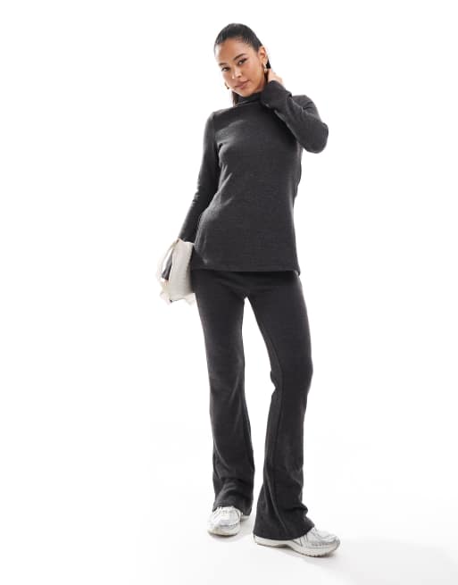 Vero Moda – Mieszaj i łącz – Bardzo miękkie czarne melanżowe spodnie z rozszerzanymi nogawkami
