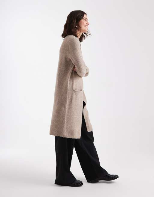 Vero Moda – Niezapinany kardigan o wydłużonym fasonie w beżowym melanżowym kolorze