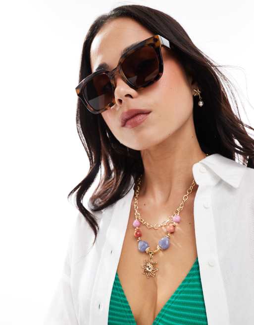 Vero Moda – Szylkretowe kwadratowe okulary przeciwsłoneczne oversize