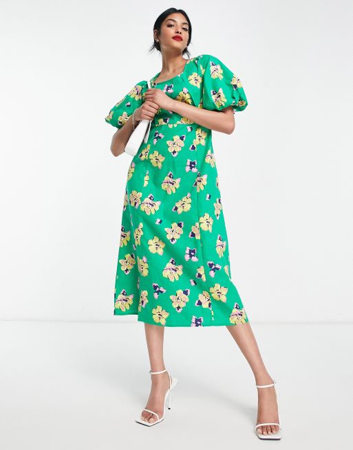 Vero Moda – Zielona sukienka midi w duży kwiatowy wzór