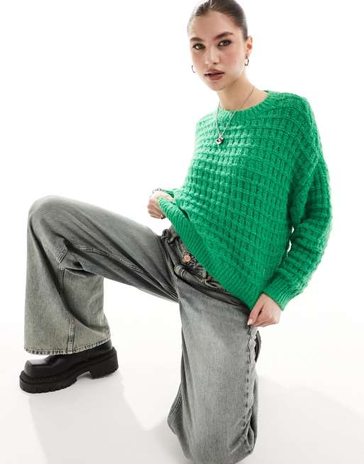 Vero Moda – Zielony puszysty sweter o splocie angielskim