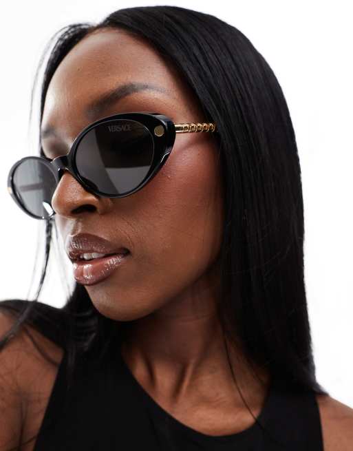 Versace – Metalowe smukłe okulary przeciwsłoneczne typu kocie oczy z czarno-złotymi oprawkami