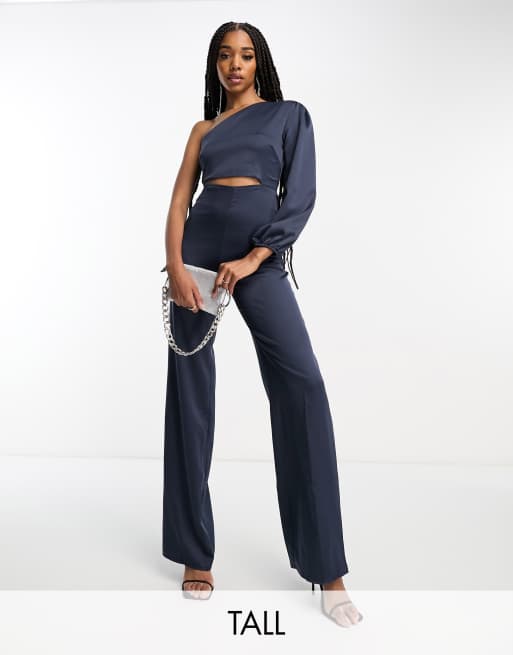 Vesper Tall – Granatowy kombinezon na jedno ramię z wycięciem