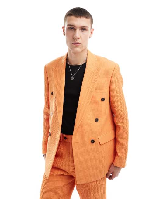 Viggo – Jaskrawopomarańczowa marynarka garniturowa oversize o waflowej fakturze