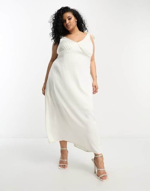 Vila Curve Bridal – Kremowa satynowa sukienka maxi na wiązanych ramiączkach