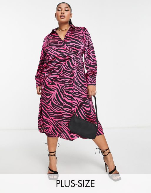 Vila Curve – Jaskraworóżowa satynowa sukienka midi w zwierzęcy wzór