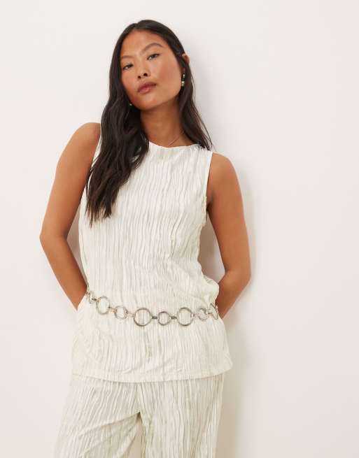 VILA Petite – Plisowany top bez rękawów z prostym dekoltem z zielonym wzorem tie dye, część zestawu