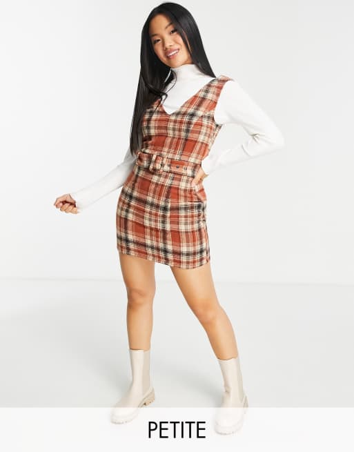 Vila Petite – Pomarańczowa sukienka mini na szelkach z paskiem w kratę
