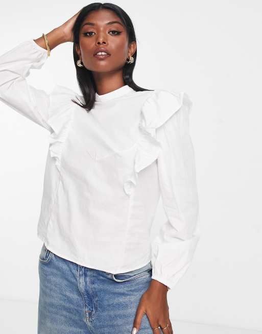 Vila – Biała bluzka z falbanką