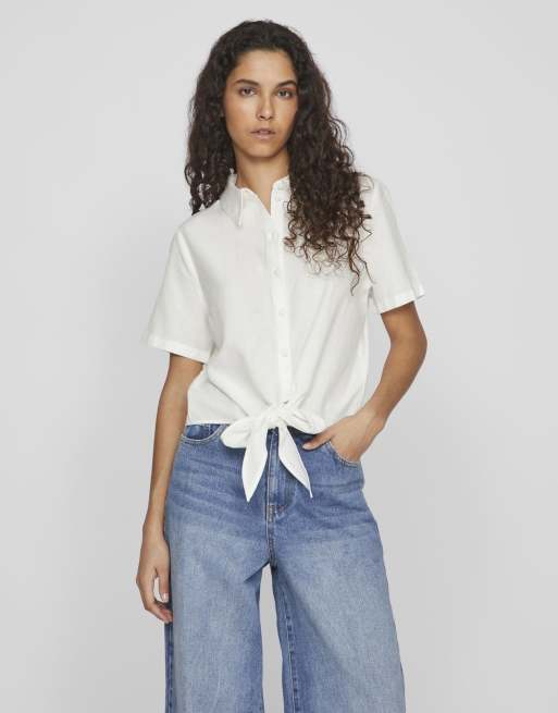 VILA – Biała koszula z krótkim rękawem