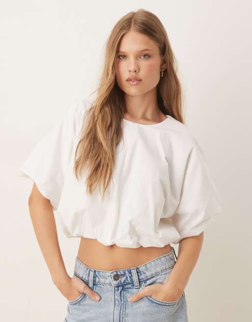Vila – Biały top z tkaniny o krótkim kroju bombki