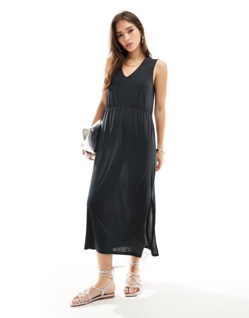 Vila – Czarna przylegająca sukienka midi z dekoltem w szpic