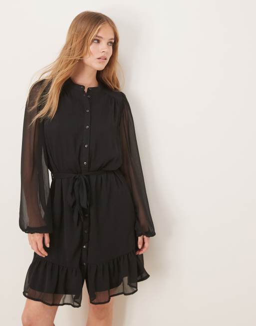 Vila – Czarna sukienka mini z długimi rękawami i guzikami z przodu