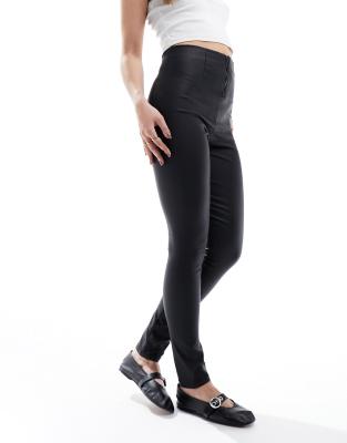 Vila – Czarne powlekane legginsy z zapięciem na zamek z tyłu