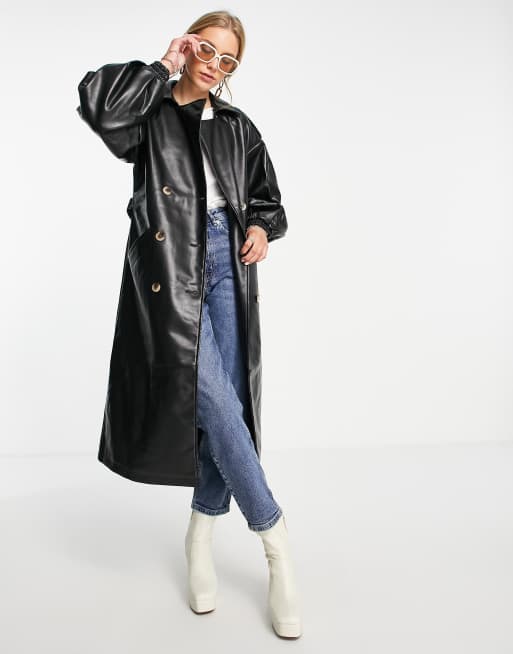 Vila – Czarny trencz z imitacji skóry