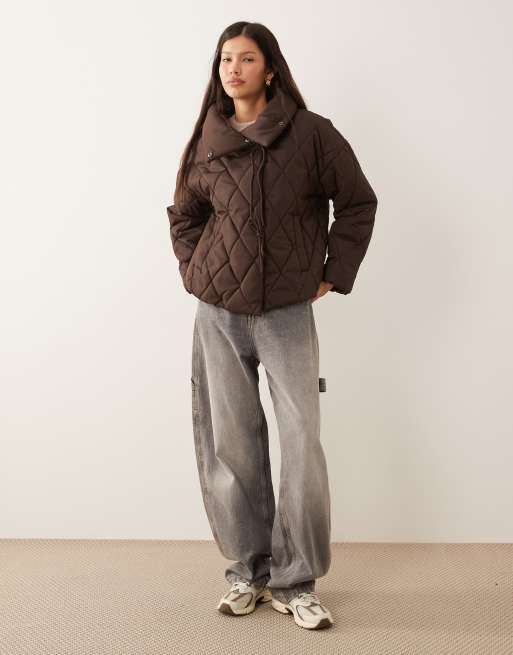 Vila – Czekoladowobrązowa pikowana kurtka z wysokim kołnierzem i wiązaniami