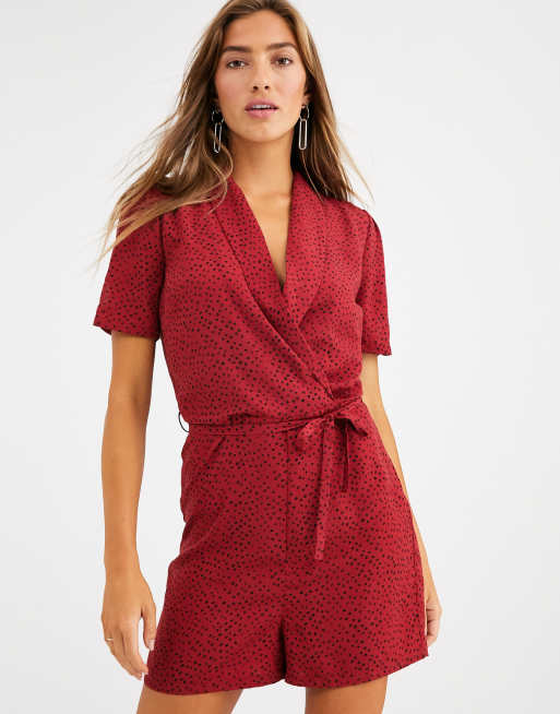 Vila – Kopertowy krótki kombinezon z kwiatowym nadrukiem