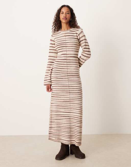 Vila – Kremowa sukienka maxi z mieszanki bawełny w abstrakcyjne pociągnięcia