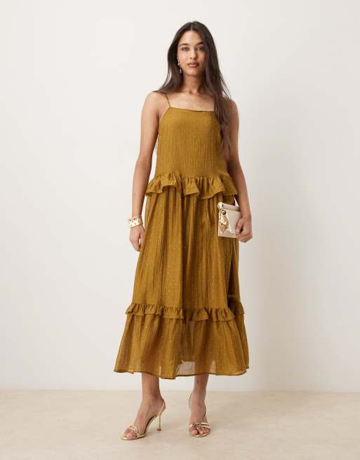 VILA – Oliwkowozielona warstwowa sukienka maxi na ramiączkach zdobiona strasami