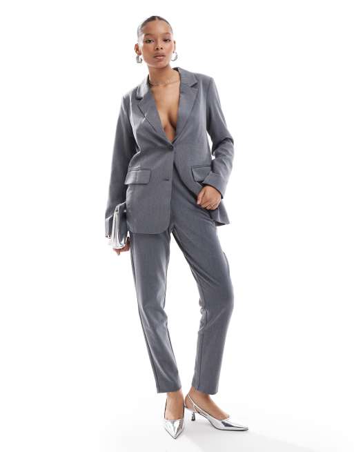 Vila – Szary garnitur: dopasowana marynarka i spodnie z wysokim stanem - zestaw