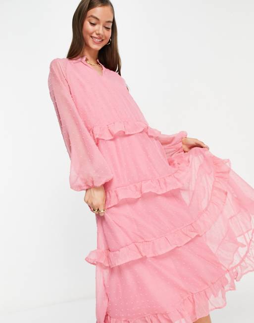 Vila – Szyfonowa różowa sukienka midi z warstwową spódnicą