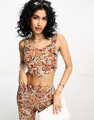 Vila – Zestaw ze wzorem paisley: top o kroju chusty i spodnie z szerokimi nogawkami
