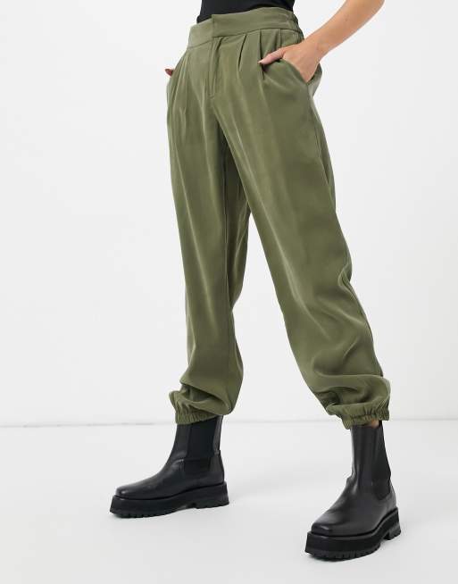Vila – Zielone spodnie z podwyższonym stanem i ściągaczami