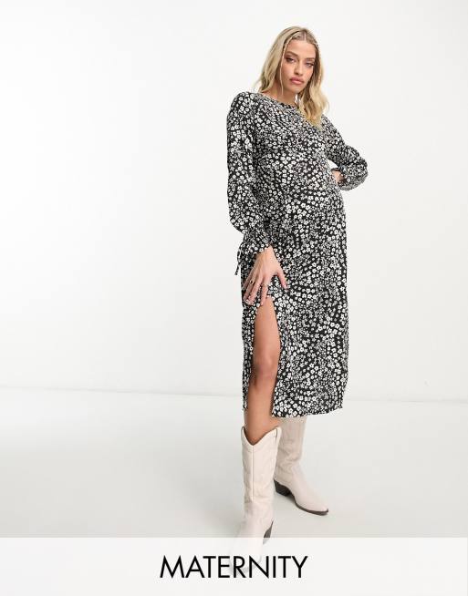 Violet Romance Maternity – Sukienka midaxi w czarno-biały kwiatowy wzór