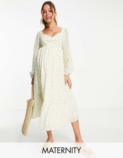 Violet Romance Maternity – Warstwowa sukienka midi w drobny kwiatowy wzór