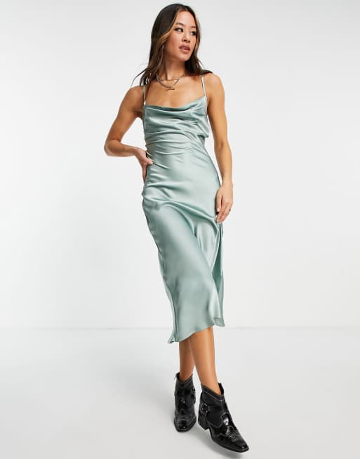 Violet Romance – Satynowa sukienka midi w kolorze szałwiowym ze sznurowaniem z tyłu