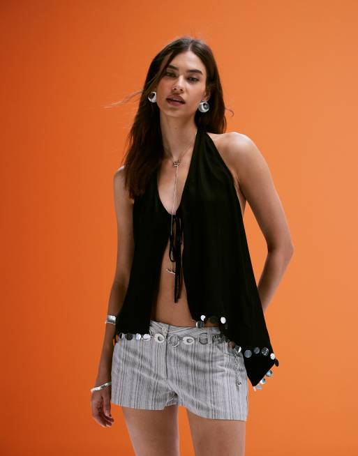 VRG GRL – Spritz – Czarny top na ramiączkach z cekinami przy brzegu, część zestawu