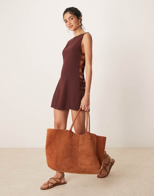 VRG GRL – Tia – Lniana bordowa sukienka mini z koralikami