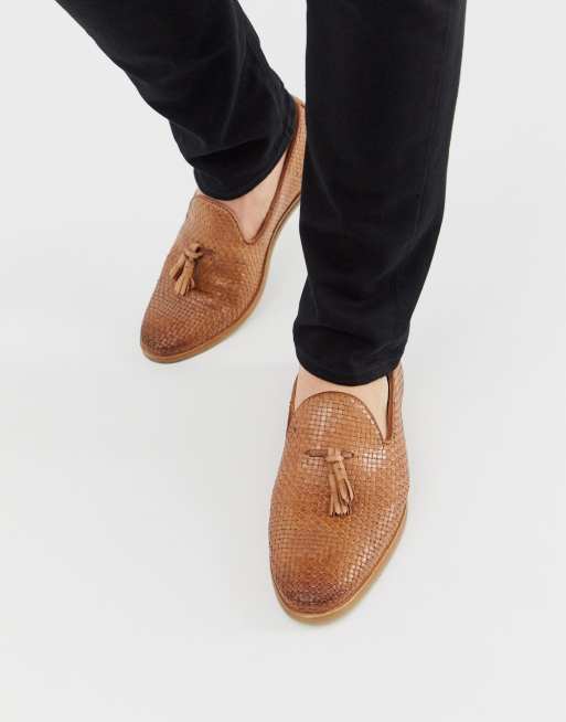 Plecione mokasyny WALK London Chris z chwostem, karmelowe