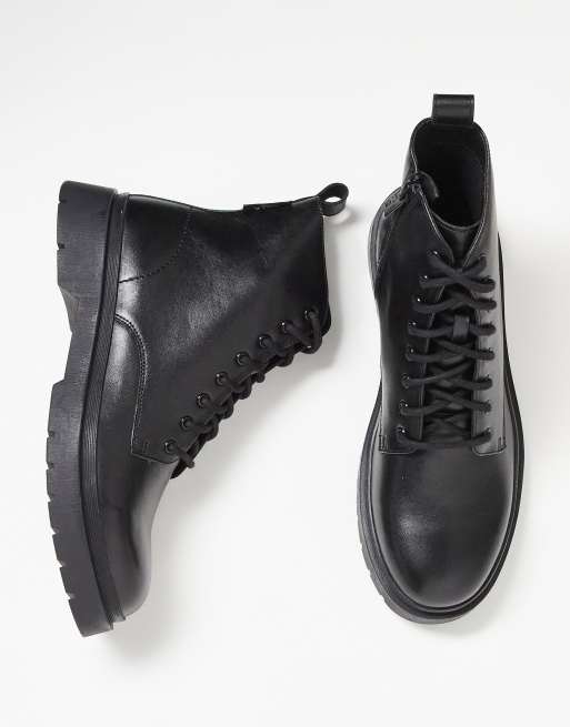Walk London – Callum – Czarne sznurowane skórzane buty