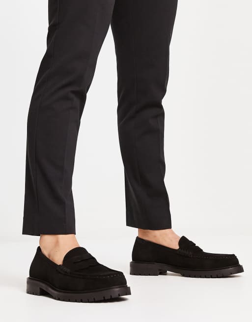 Walk London – Campus – Czarne zamszowe loafersy na grubej podeszwie
