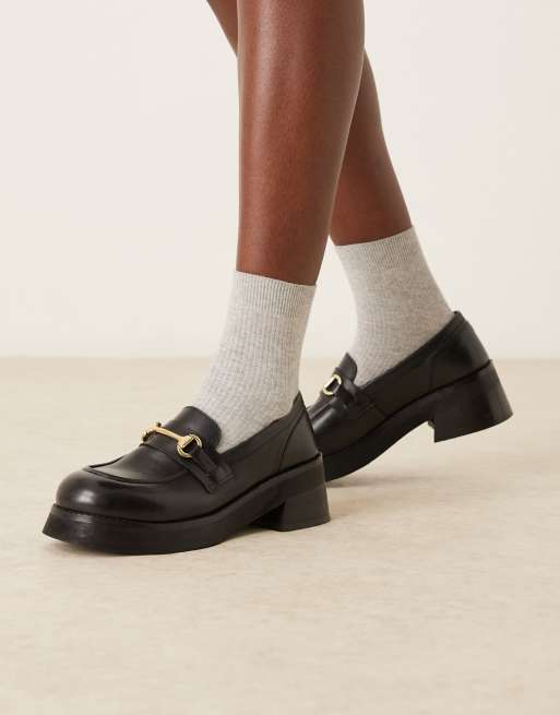 Walk London – Cheryl – Czarne skórzane loafersy z detalem