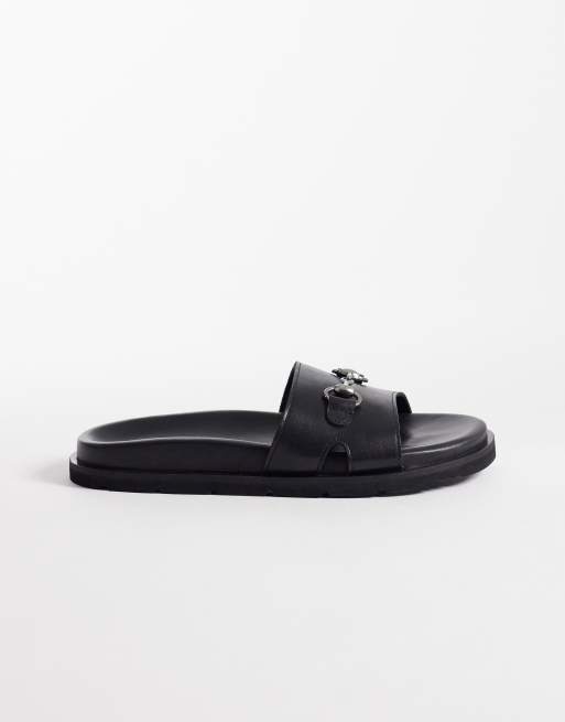 Walk London – Donna – Czarne skórzane klapki