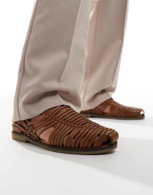 Walk London – Harry – Jasnobrązowe wsuwane buty skórzane z plecionką