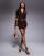 Wanderdoll – Lacie – Kawowy koronkowy zestaw: koszula z głębokim dekoltem i długimi rękawami i spódnica mini