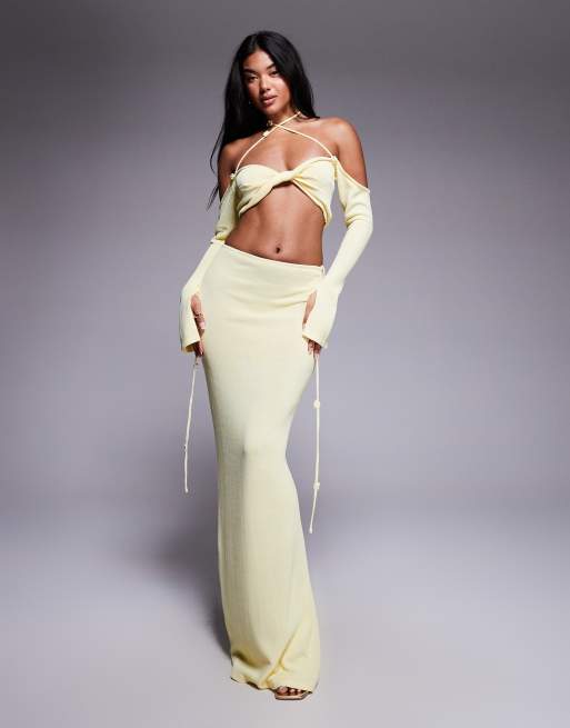 Wanderdoll – Ophelia – Cytrynowa dzianinowa spódnica maxi, część zestawu