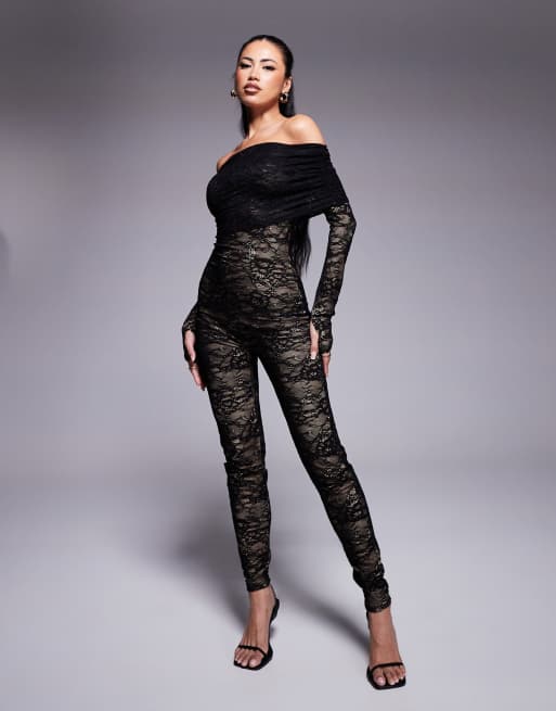 Wanderdoll – Riri – Czarny dopasowany kombinezon koronkowy