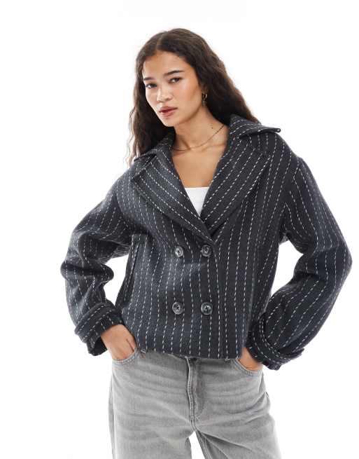 Wednesday's Girl – Szara dwurzędowa marynarka w prążki