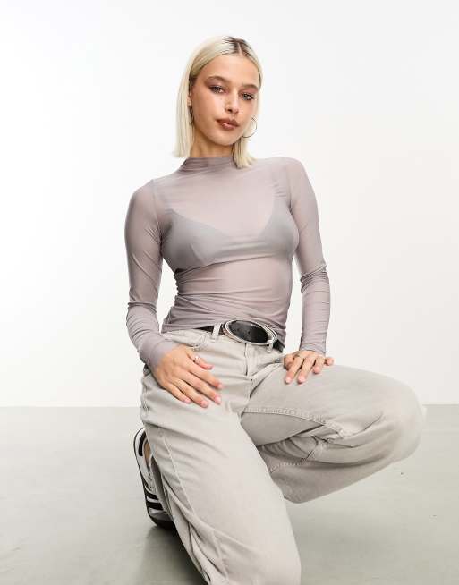 Weekday – Allison – Szary top z długim rękawem i półgolfem