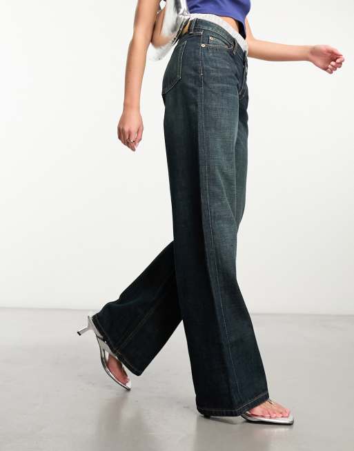 Weekday – Ample – Niebieskozielone jeansy o luźnym kroju z obniżonym stanem i prostymi nogawkami
