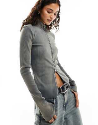 Weekday – Anja – Niebieskobeżowy zapinany na zamek top z długimi rękawami