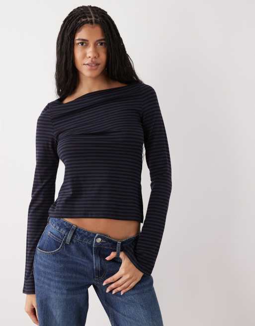 Weekday – Annie – Miękki top z długimi rękawami i dekoltem w łódkę w granatowe paski – Tylko w ASOS
