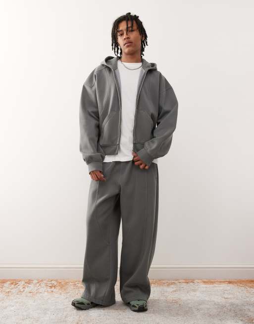 Weekday – Astro – Ciemnoszare joggersy oversize z szerokimi nogawkami i wyeksponowanymi szwami, część zestawu