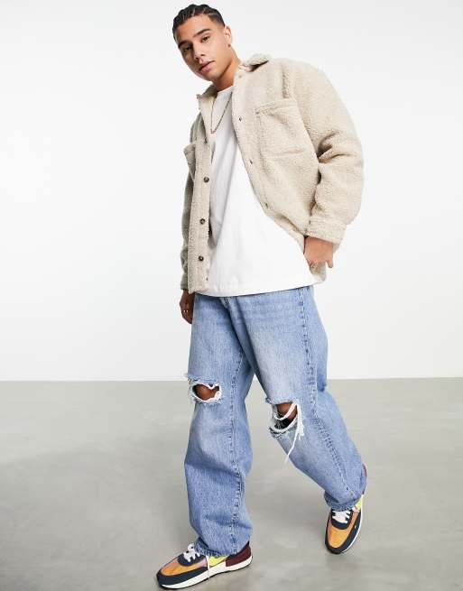 Weekday – Beżowa koszula wierzchnia z kożuszka