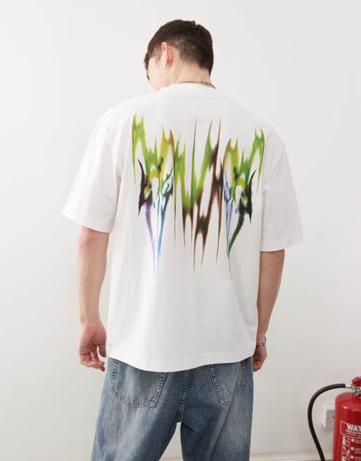 Weekday – Biały T-shirt o luźnym kroju z grafiką z przodu i z tyłu