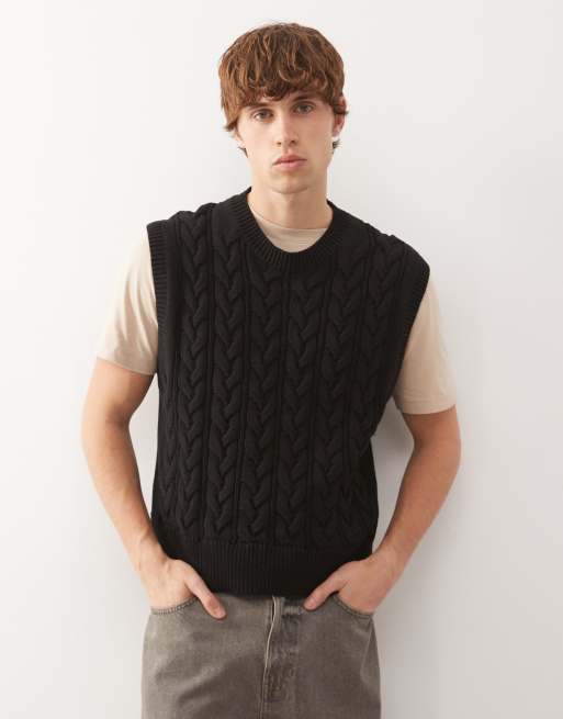 Weekday – Czarna kamizelka z dzianiny o warkoczowym splocie